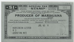 Interestingly enough, after the Philippines fell to Japanese forces in 1942, the Department of Agriculture and the U.S. Army urged farmers to grow hemp fiber. US Govt issued cultivation tax stamps to farmers. Without any change in the Marihuana Tax Act, over 400,000 acres of hemp were cultivated between 1942 and 1945. The last commercial hemp fields were planted in Wisconsin in 1957.[5]