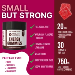 Stirling Professional CBD energy gummies are crafted to provide an energy boost.