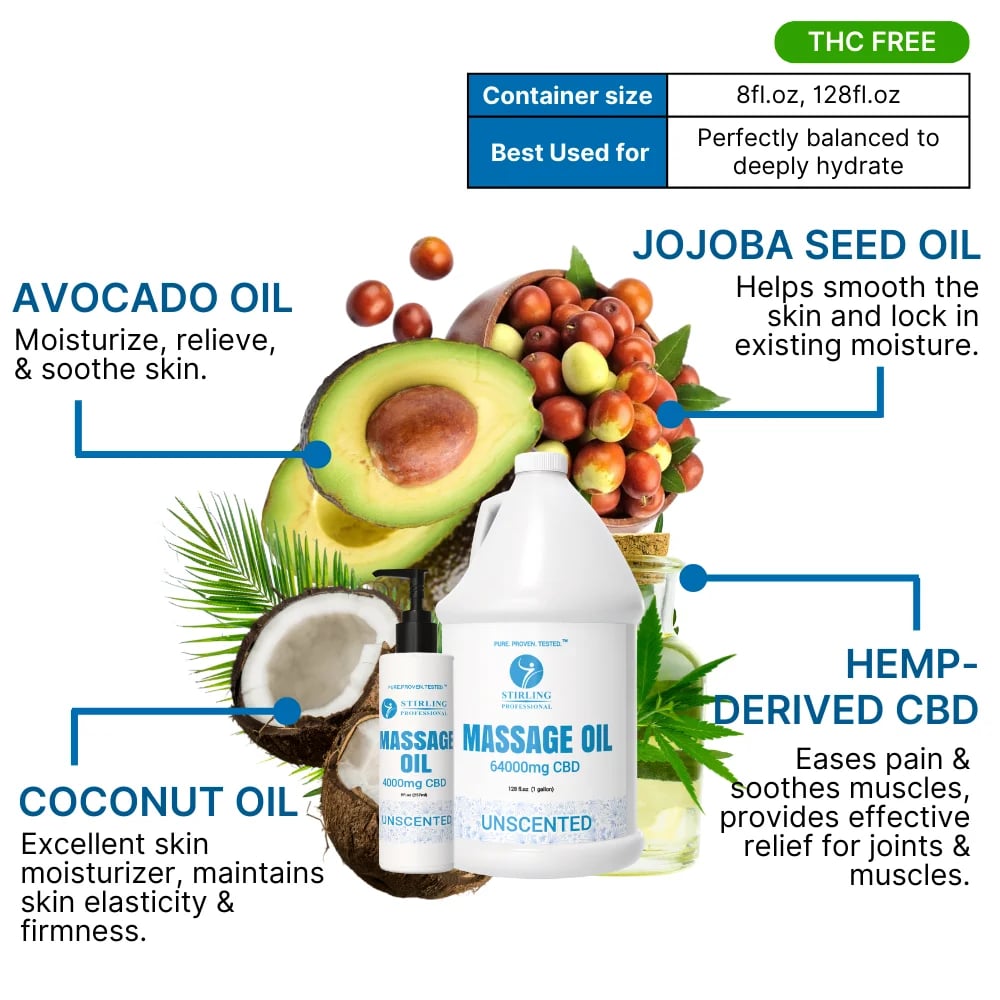 However, as you strive to provide comprehensive care, you might look for additional tools that reduce soreness and offer other excellent benefits. Enter the potency of Stirling’s CBD Massage Oil.