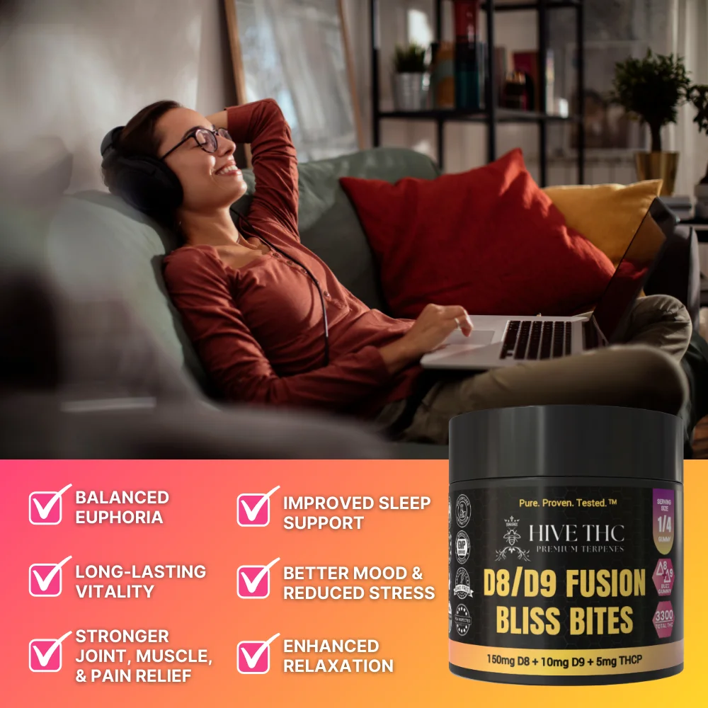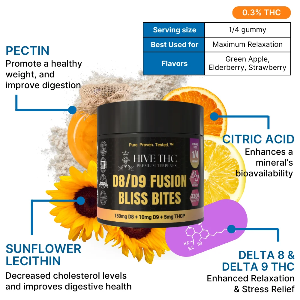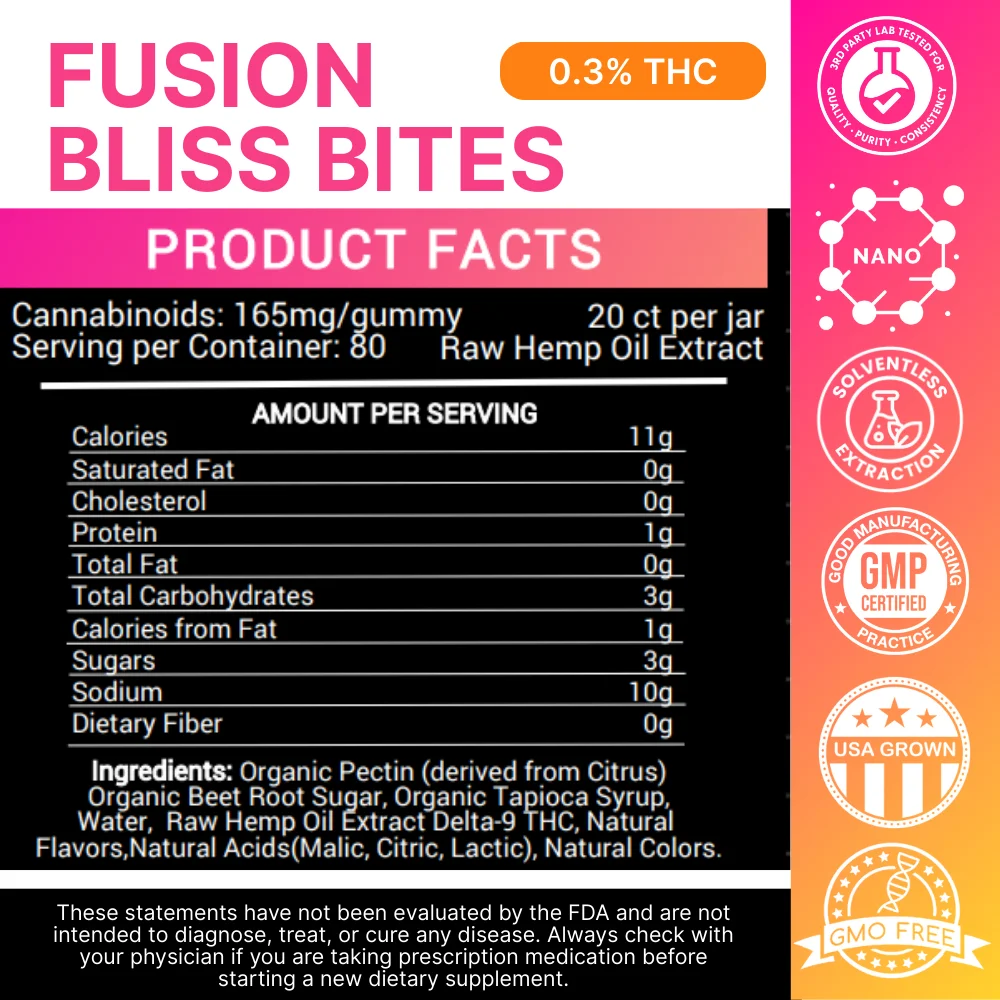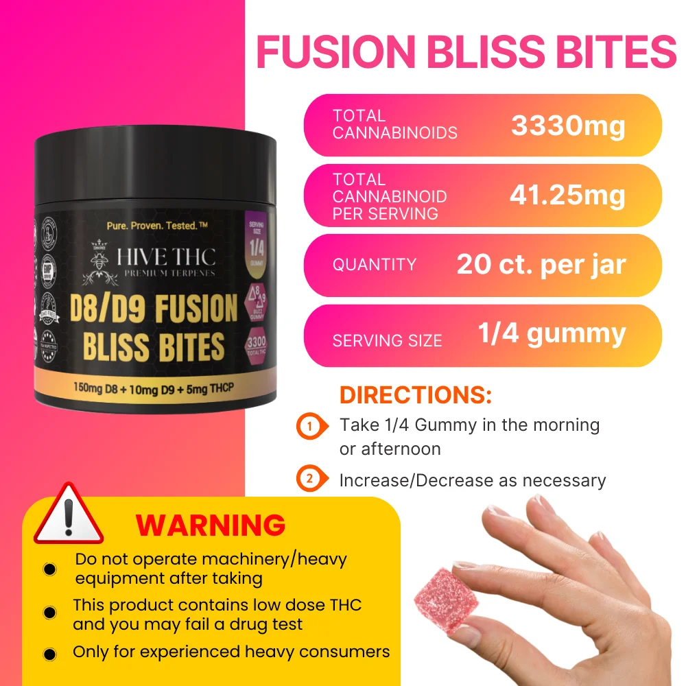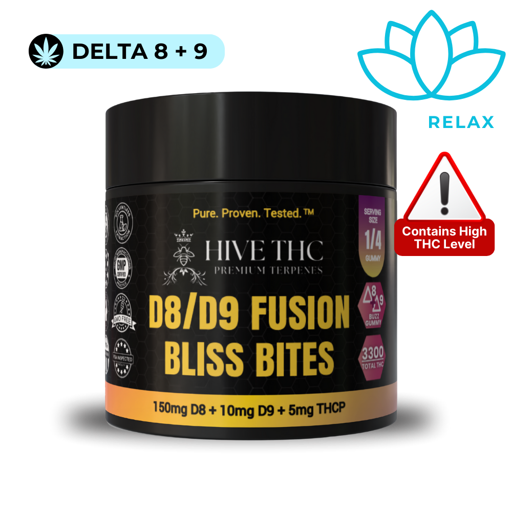 Unlock the ultimate relaxation with Stirling’s Delta 8 and Delta 9 Fusion Bliss Bites. With 165mg of THC in each gummy - these powerful, delicious gummies combine the best of both worlds, combining the soothing effects of Delta 8 with the uplifting vibes of Delta 9. They are perfect for those looking to elevate their mood and unwind in blissful harmony.- Most Powerful Gummy on the Market